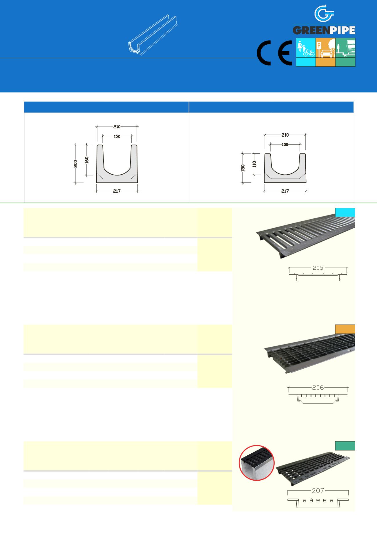Canali in calcestruzzo gettato provvisto di griglia a ponte, con ali per
